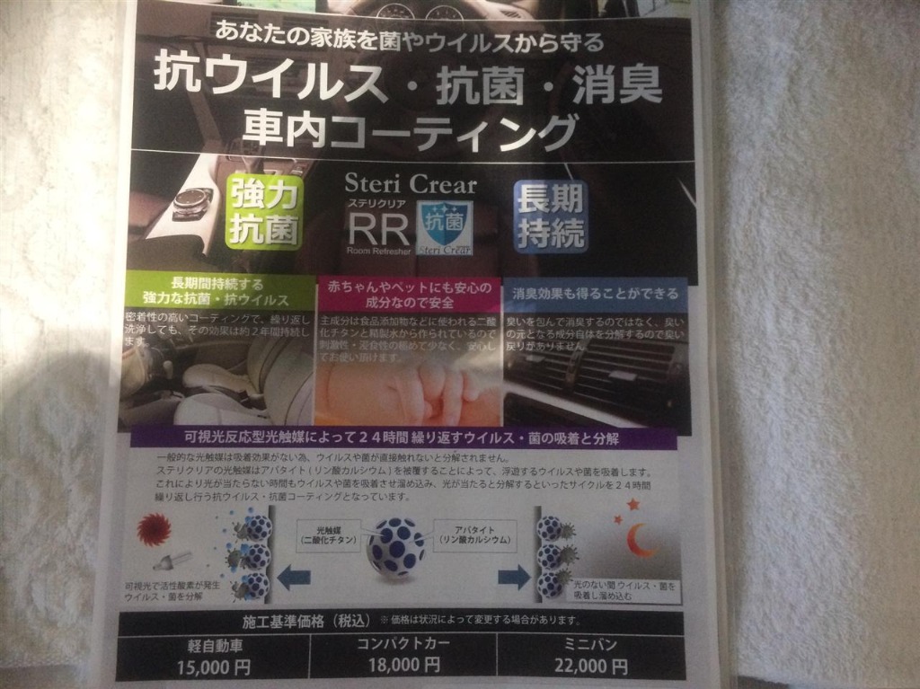 パワーアップしたステリクリアRRの紹介です。愛車の抗菌、消臭にいかがですか❓赤ちゃんやペットにも安心な成分で約2年間持続します😊予約にて施工しますので、お気軽にお電話下さい👍大阪で板金塗装をお考えの方は「安い・親切・丁寧」の池上鈑金までご相談下さい。