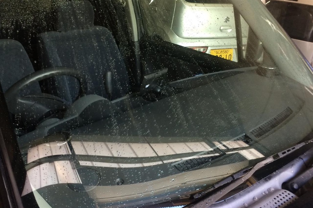 ワゴンRのフロントガラスコーティング👍大事なお車を飛び石から守ります^_^このコーティングは硬さが9Hになり、撥水から30日にかけて親水性になります。気になる方は是非😊